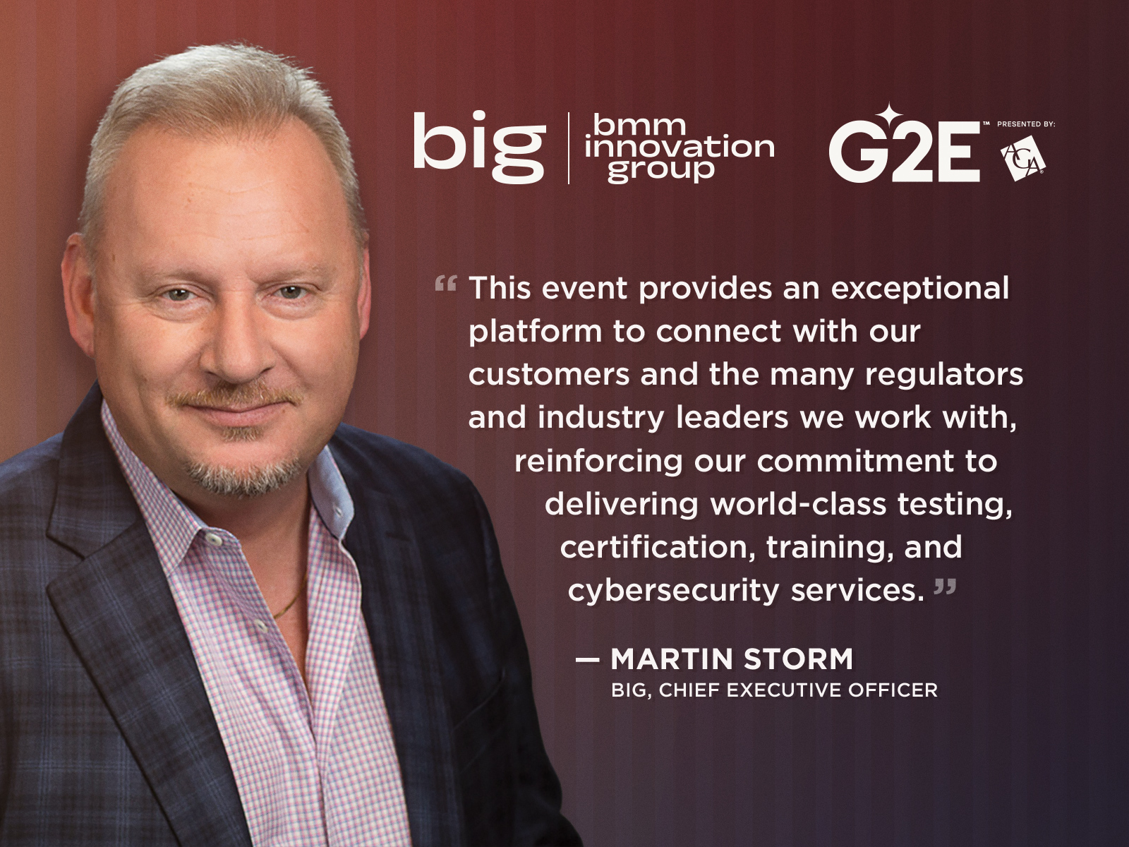 BIG Group Chairman, President, and CEO Martin Storm said, “We are thrilled to be exhibiting at G2E for our 22nd year. This event provides an exceptional platform to connect with our customers and the many regulators and industry leaders we work with, reinforcing our commitment to delivering world-class testing, certification, training, and cybersecurity services.”